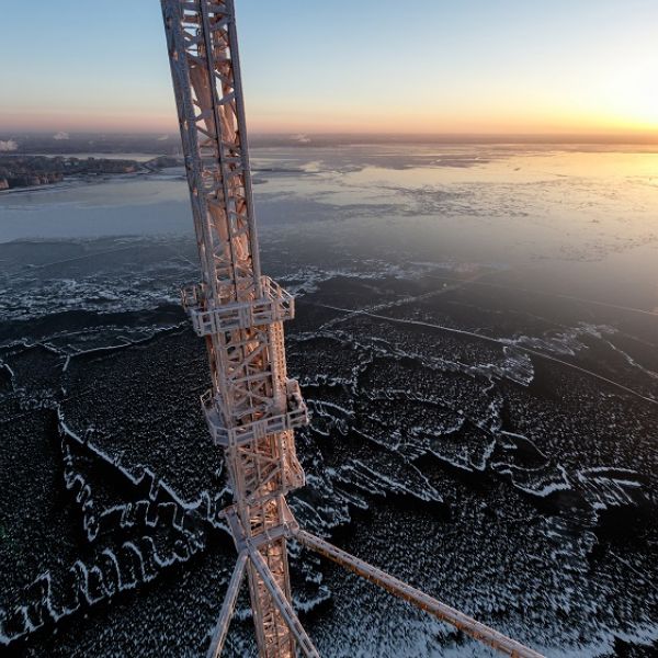 "Сама стройка Лахта Центра – объектов такой сложности я не видел и техническое исполнение восхищает. Архитектура очень сложная, и то как, все воплощается. Тут все – от металла до бетонных работ, фасадов – работа на высшем уровне", — говорит сервис-инженер Liebherr Сергей Прочухан, — «А еще — закаты».