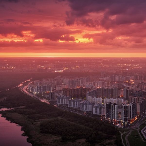 Солнечные рассветы и закаты над башней Лахта Центра. Лето 2017 - январь 2018
